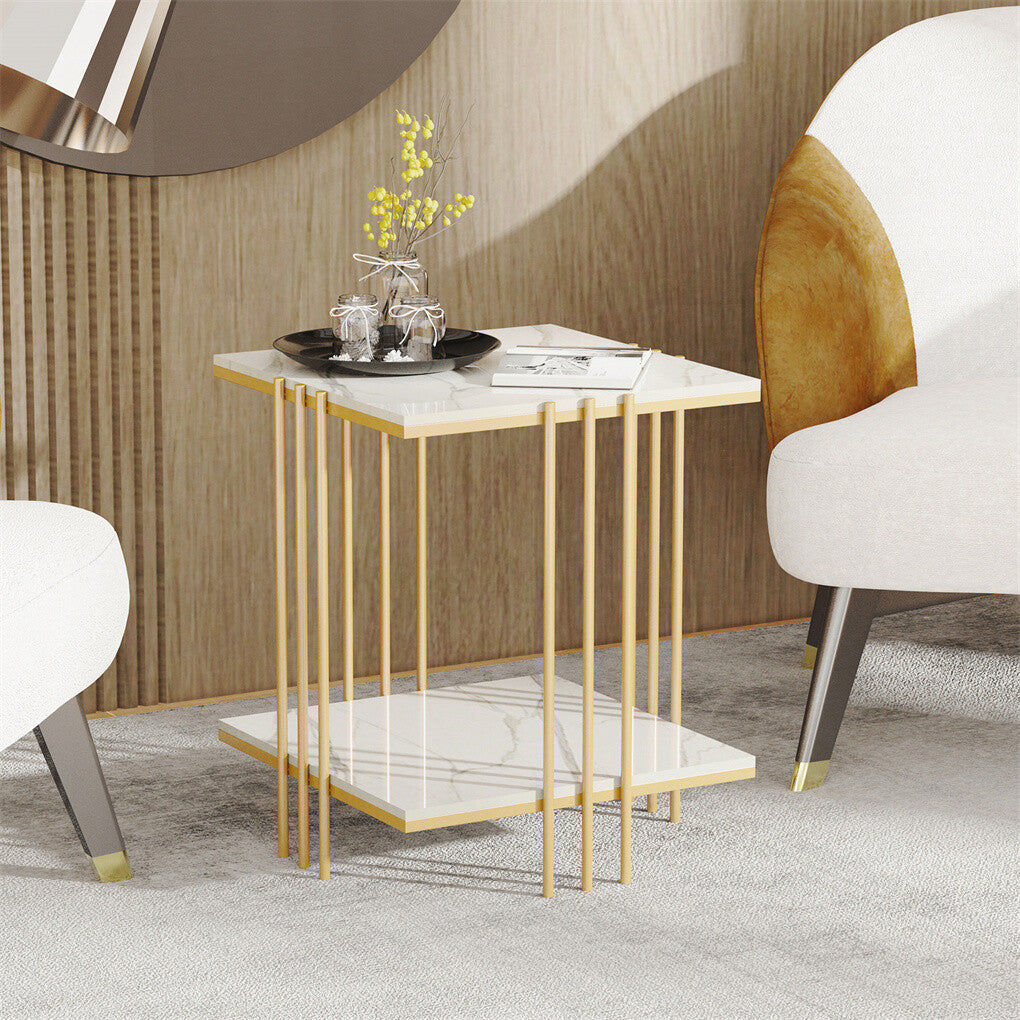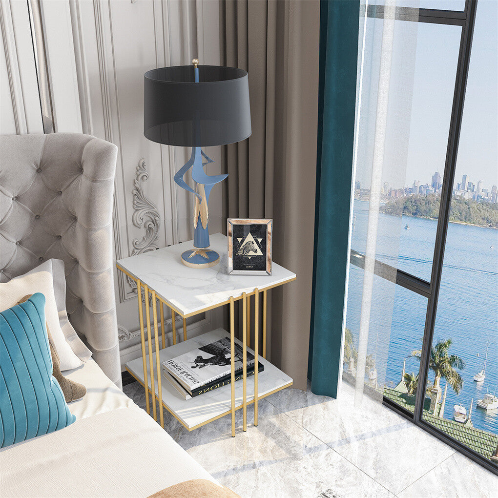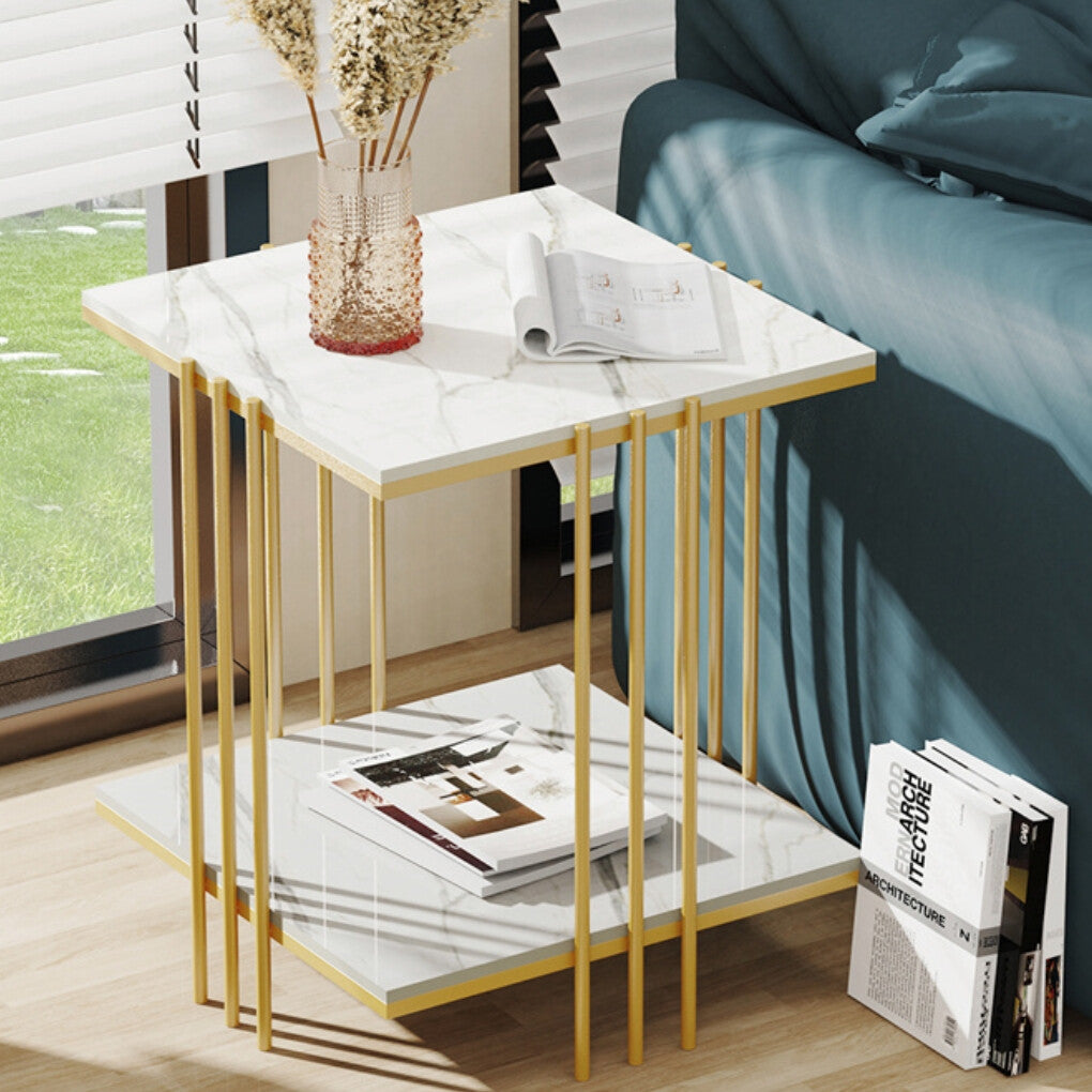 2 Tier End Table Bedside Tables Sintered Stone Nightstand Display Storage Shelf