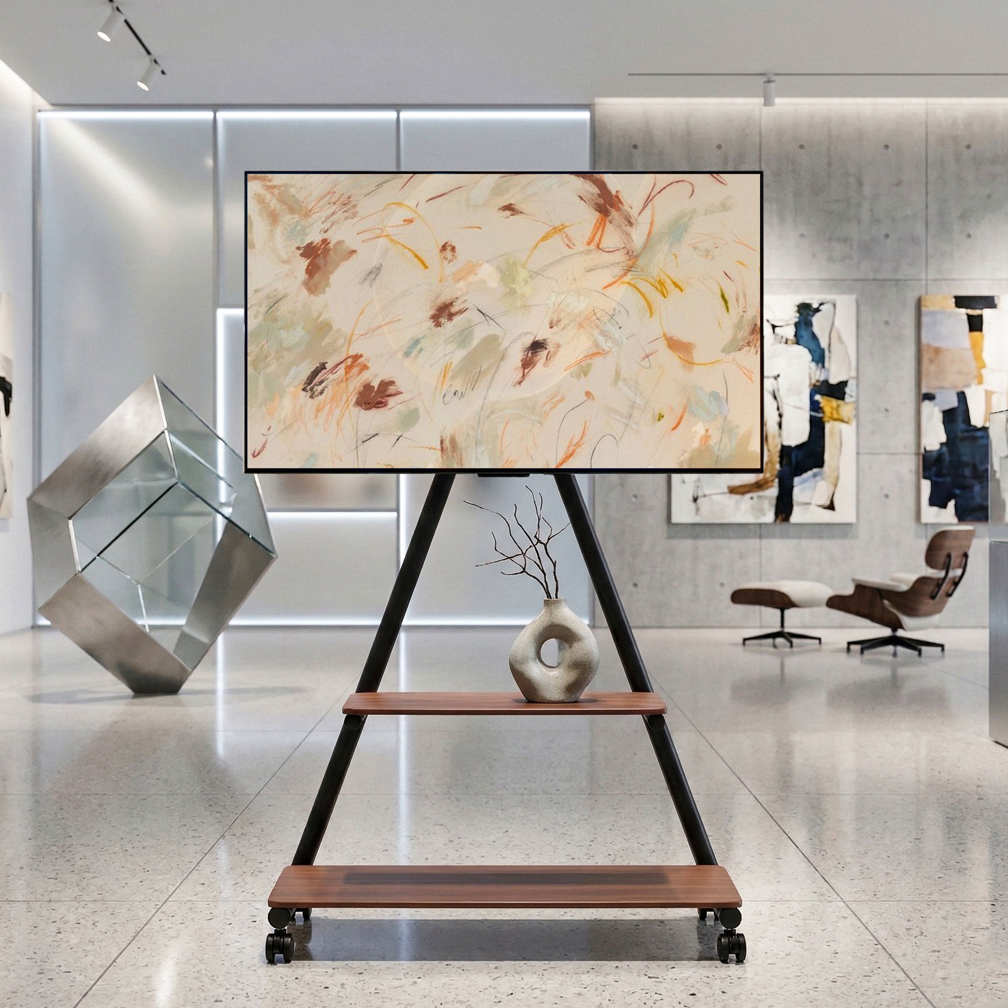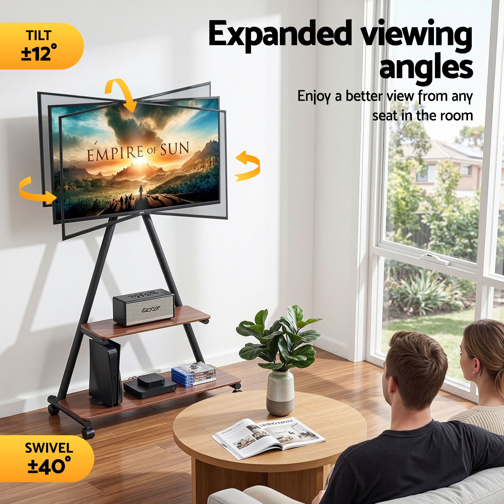 Enhance your viewing experience with the Artiss Mobile TV Stand, a sturdy and versatile solution designed for modern homes, offices and professional environments. Built with a durable steel frame, this freestanding stand securely supports TVs from 32 to 75 inches, with a maximum TV weight capacity of 68kg.The stand features a practical dual-shelf storage design with solid MDF shelves. The upper shelf supports up to 30kg, ideal for laptops, gaming consoles or media players, while the lower shelf holds up to 35kg for additional audiovisual equipment. Together with the TV mount, the entire unit offers a total load capacity of 133kg.Designed for flexibility, the stand moves easily between rooms with smooth-rolling caster wheels, while built-in locks help keep it stable when positioned. The adjustable mounting bracket provides multiple height levels, a ±40° swivel and a ±12° tilt to help achieve a comfortable viewing angle and reduce screen glare.Compatible with VESA mounting patterns up to 600mm x 400mm, the stand also includes an integrated cable management system to keep wires neat and organised. Combining strength, mobility and practical storage, the Artiss Mobile TV Stand is a reliable choice for living rooms, offices, meeting spaces and conference rooms.