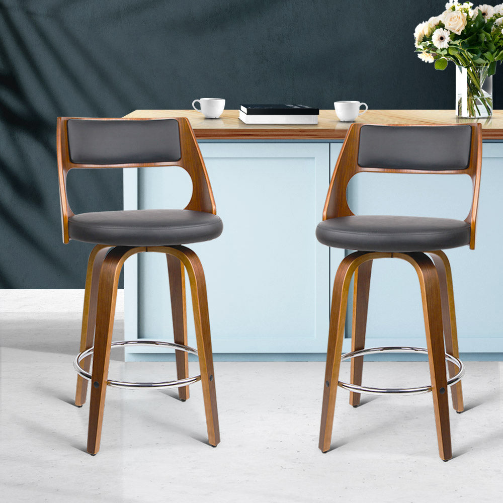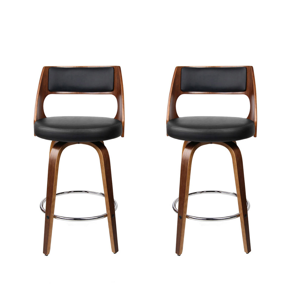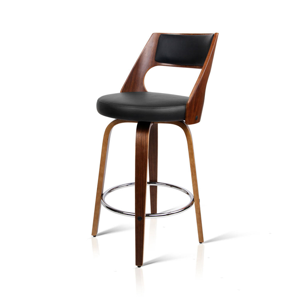 Meticulously crafted with solid wood in a stunning walnut finish for the legs, the Bentwood Bar Stool features a generous puckered faux leather integrated seat and backrest that feel comfortably smooth and look absolutely classy. The mid-height backrest also provides appreciable support while the anti-slip rubber pads at the bottom of the legs remain firm and steady even with robust use. Not least, the chrome footrest lets you perch in style, feet up.