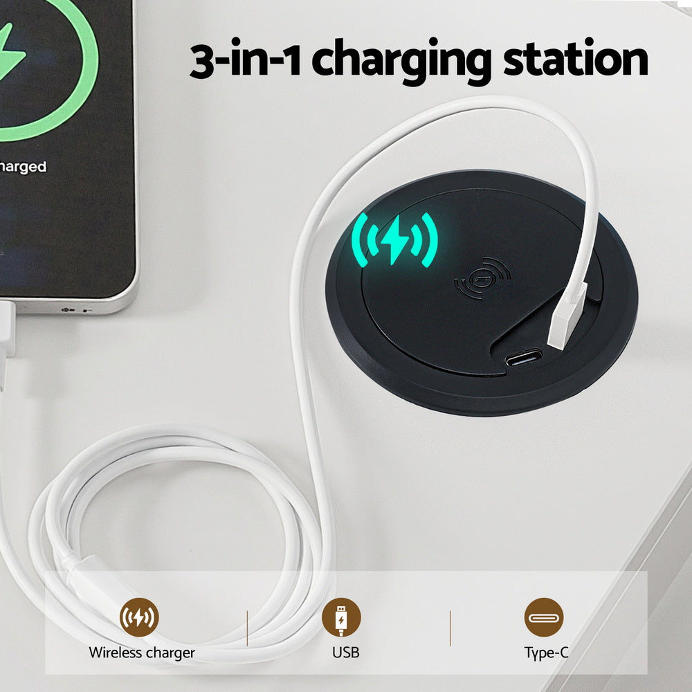3-in-1 charging port: wireless, USB & Type-C