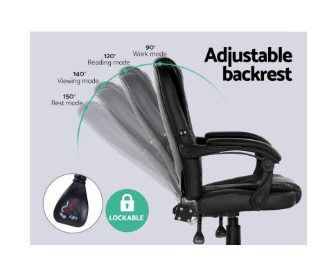 Artiss Electric Massage Office Chairs PU Leather Recliner Computer Gaming Seat