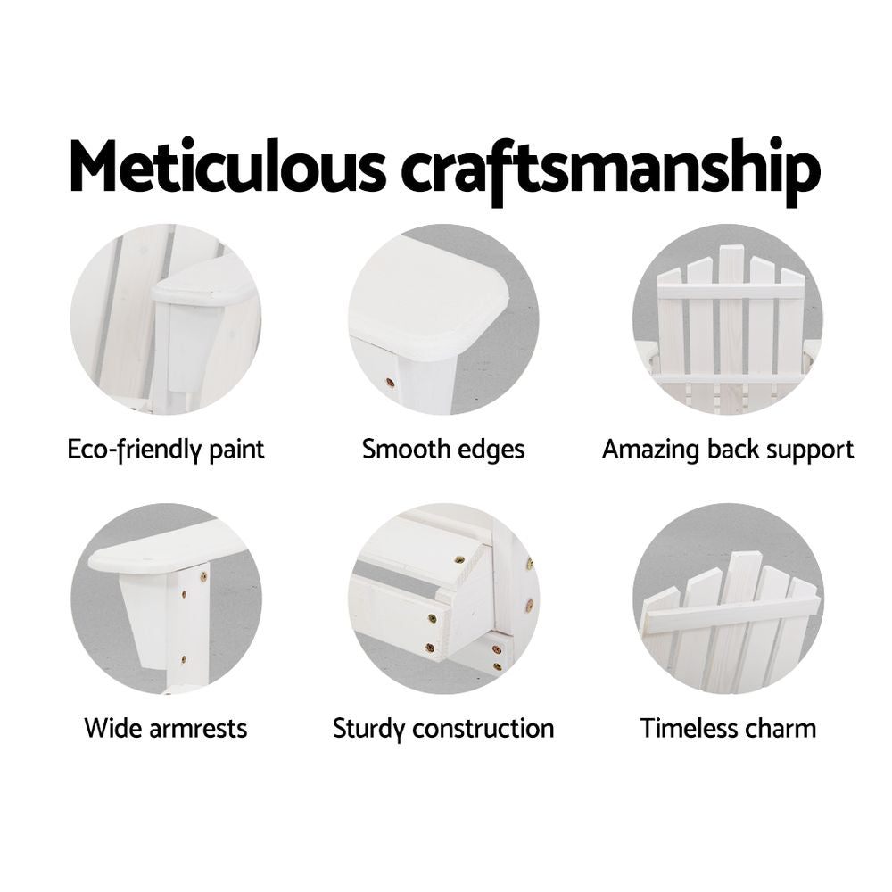 With meticulous attention to crafting details, the Adirondack Chair is finished in an eco-friendly water-based paint to preserve the Fir wood finish and improve its UV resistance and all-weather use capability. And when not in use, you have the option to put the chairs away for safe keeping.